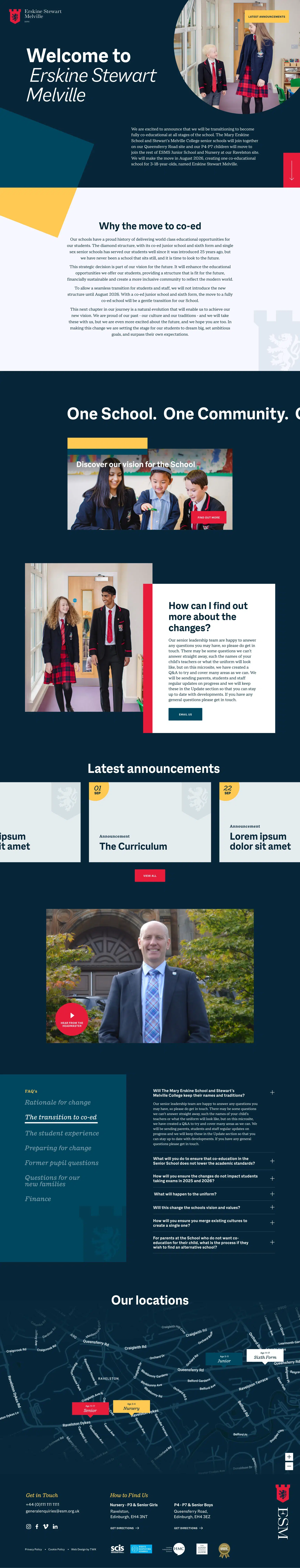 While the main school website was being designed, we first built a microsite for ESM that both introduced their new brand and visual identity and explained the upcoming transition to co-education.